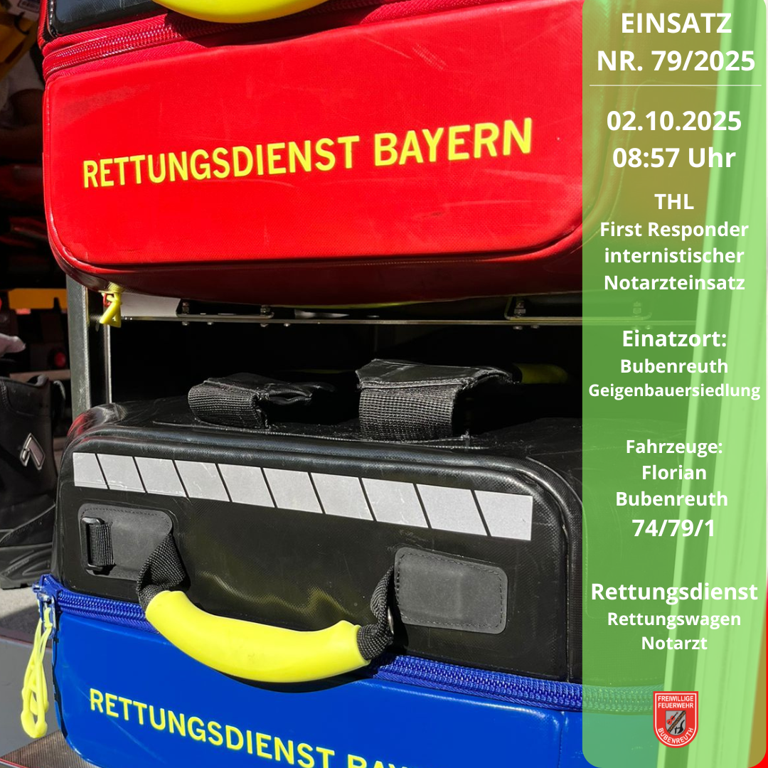 +++ 02.10.2025 / 08:57 Uhr --- Einsatz Nr. 079/2025 --- THL - First Responder / internistischer Notarzteinsatz --- Bubenreuth - Geigenbauersiedlung --- Einsatz für den First Responder +++
