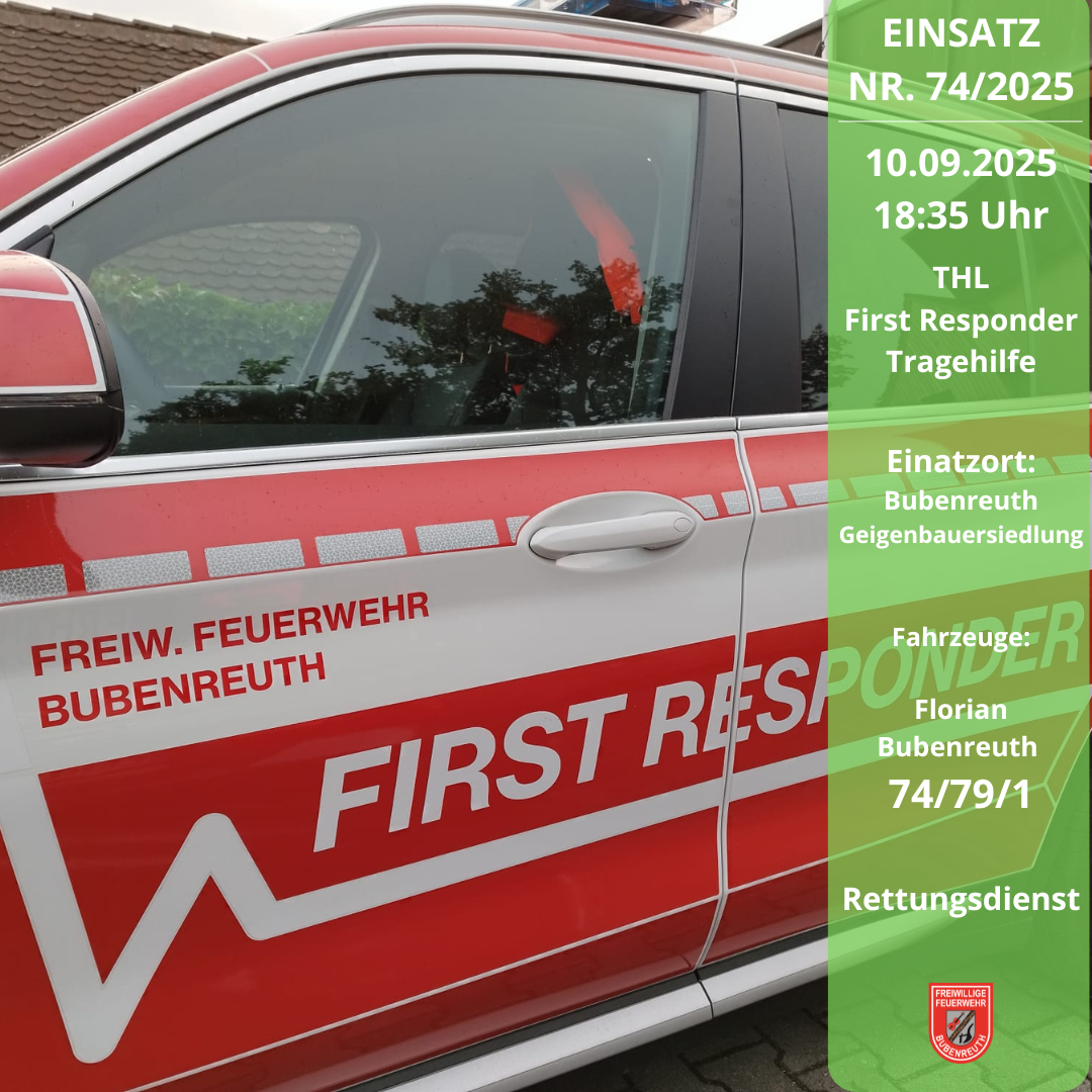 +++ 10.09.2025 / 18:35 Uhr --- Einsatz Nr. 074/2025 --- THL - First Responder / Tragehilfe --- Bubenreuth - Geigenbauersiedlung --- Einsatz für den First Responder +++