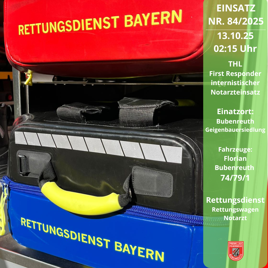 +++ 13.10.2025 / 02:15 Uhr --- Einsatz Nr. 084/2025 --- THL - First Responder / internistischer Notarzteinsatz --- Bubenreuth - Geigenbauersiedlung --- Einsatz für den First Responder +++