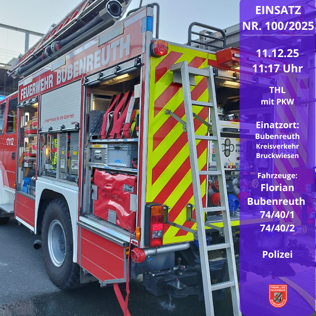 +++ 11.12.2025 /11:17 Uhr --- Einsatz Nr. 100/2025 --- THL - PKW --- Bubenreuth - Gewerbegebiet Bruckwiesen --- Einsatz für HLF1 + HLF2 +++