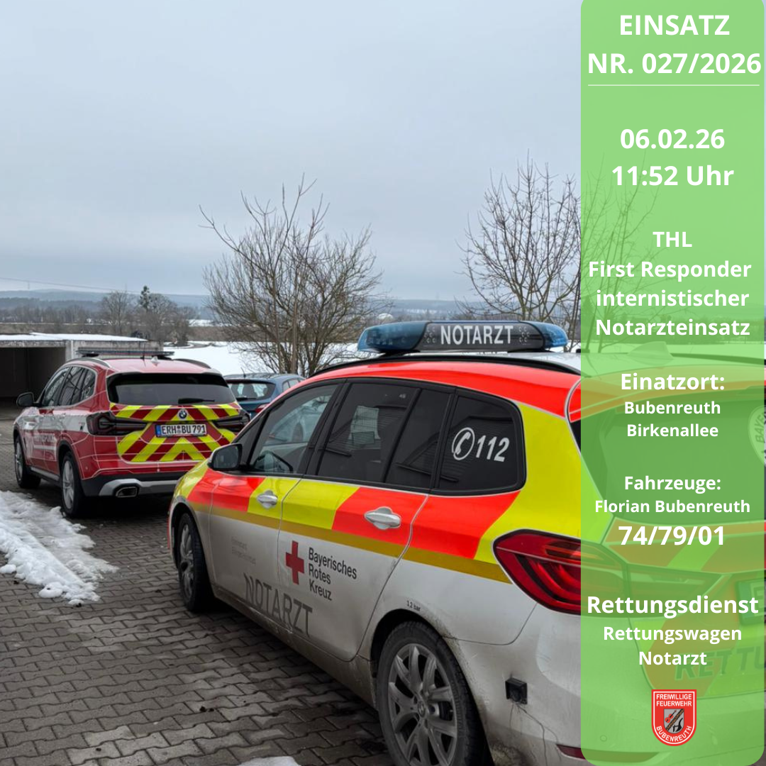 +++ 06.02.2026 / 11:52 Uhr --- Einsatz Nr. 026/2026 --- THL - First Responder / internistischer Notarzteinsatz --- Bubenreuth - Birkenallee --- Einsatz für den First Responder +++