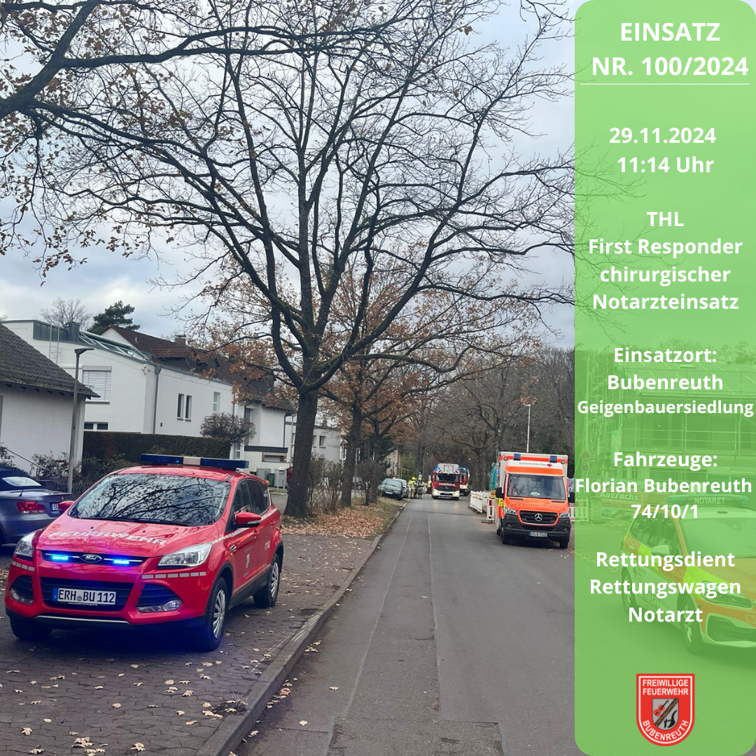 +++ 29.11.2024 / 11:14 Uhr --- Einsatz Nr. 100/2024 --- THL - First Responder / chirurgischer Notarzteinsatz --- Bubenreuth - Geigenbauersiedlung --- Einsatz für den First Responder +++