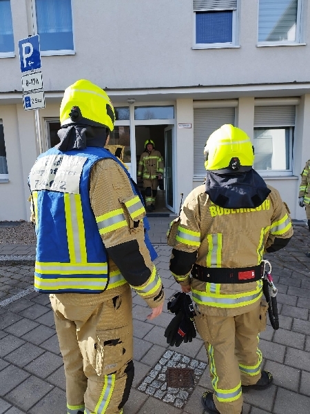 Vor Ort angekommen, gingen die Einsatzkräfte in Bereitstellung. Der Einsatzleiter begab sich zur Erkundung des Vorfalls und befragte die Anwohner, um mehr Informationen zu erhalten. Parallel dazu wurde der Angriffstrupp unter schwerem Atemschutz mit einem Mehrgasmessgerät in das betroffene Gebäude geschickt. Nach einer kurzen Erkundung kam schnell die Rückmeldung aus dem Gebäude, dass kein Gas gemessen werden konnte.