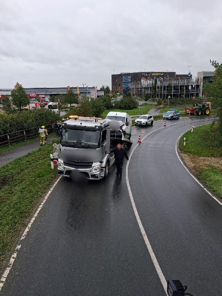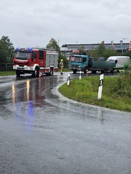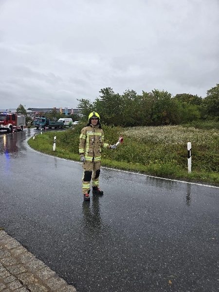Bubenreuth, 22. September 2025 – Am Montagmittag wurden die Einsatzkräfte der Feuerwehr Bubenreuth um 13:41 Uhr durch die Integrierte Leitstelle Nürnberg zu einem Verkehrsunfall auf der Kreisstraße im Industriegebiet Bruckwiesen alarmiert. Auch Polizei und Rettungsdienst waren im Einsatz.