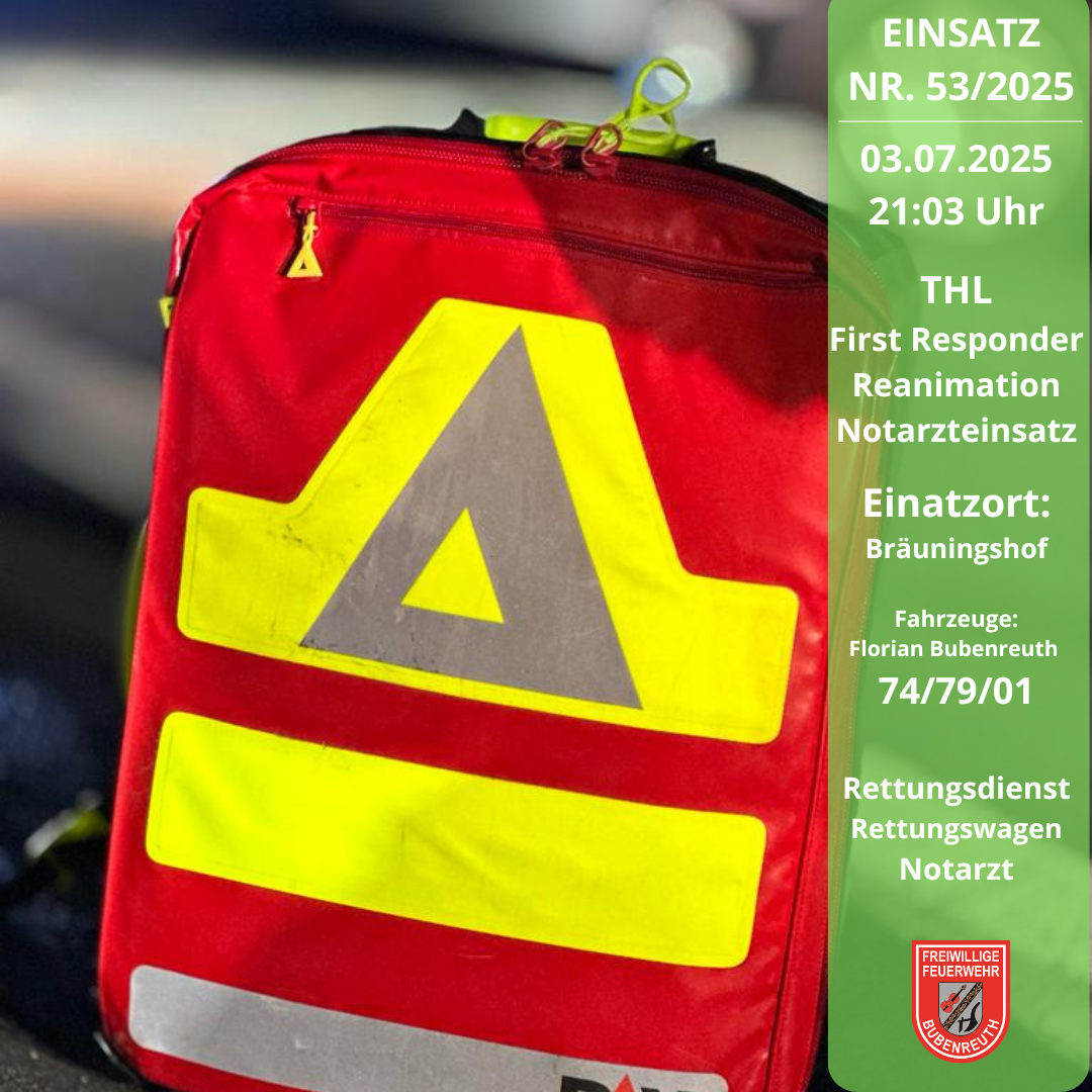 Die Leitstelle Nürnberg alarmierte am 19.01.2025 um 22:54 Uhr die Kollegen des First Responder Bubenreuth gemeinsam mit einem Rettungswagen und den Notarzt zu einem internistischen Notarzteinsatz in die Geigenbauersiedlung. Bis zum Eintreffen des Rettungsdienstes wurde der Patient durch die First Responder versorgt und betreut. Der Patient wurde an die Kollegen des Rettungsdienstes übergeben welche die Versorgung übernahmen und ihn in ein nahegelegenes Krankenhaus verbrachten. Wir wünschen gute Besserung und schnelle Genesung.