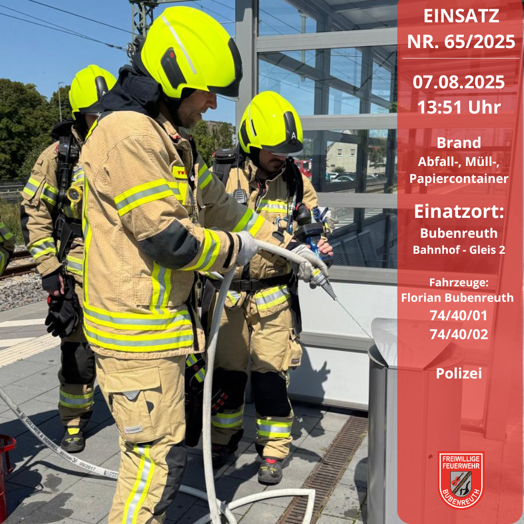 Die Feuerwehr Bubenreuth konnte den Einsatz schnell und ohne größere Vorkommnisse abschließen. Ein weiteres Eingreifen war nicht notwendig.