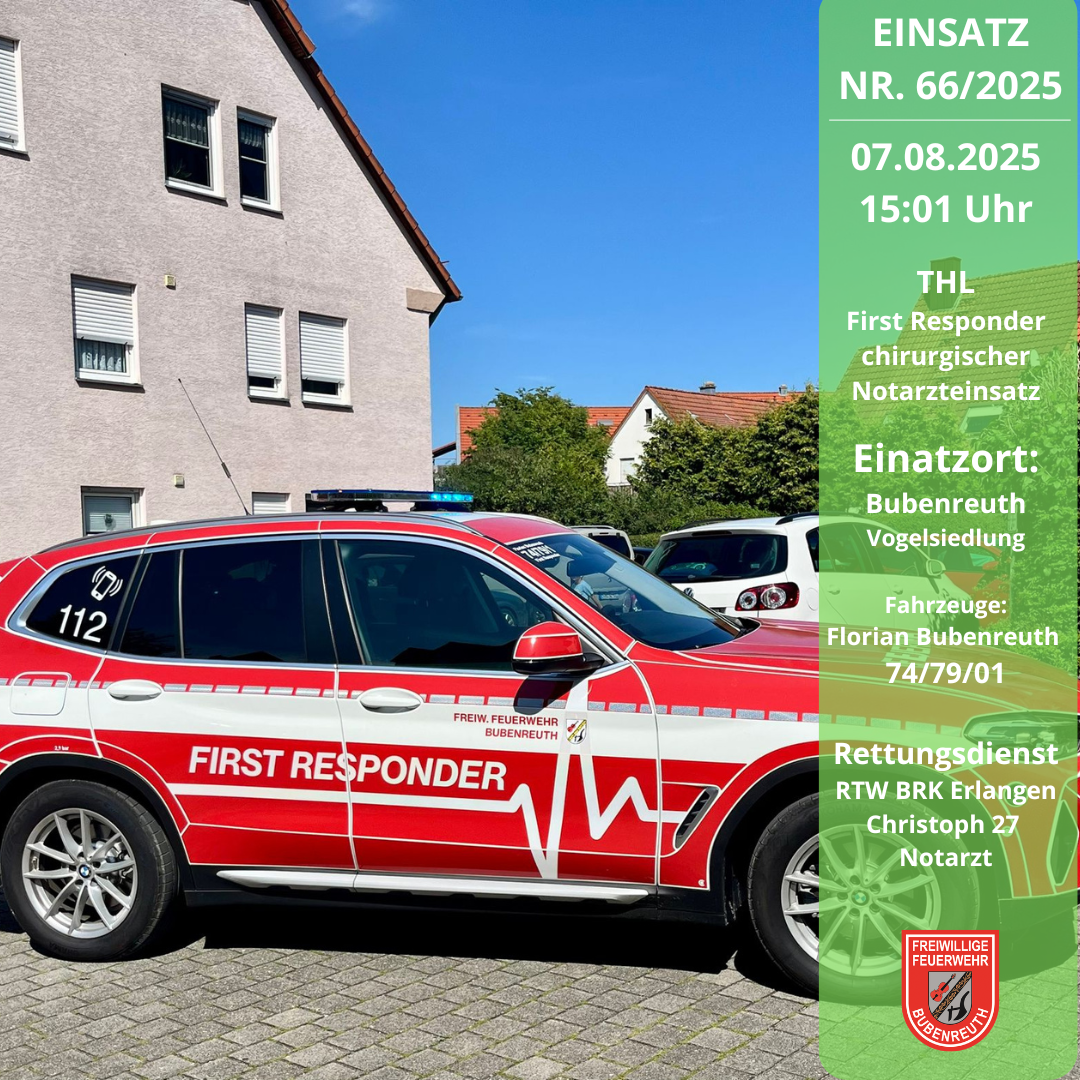 +++ 04.10.2025 / 15:56 Uhr --- Einsatz Nr. 081/2025 --- THL - First Responder / chirurgischer Notarzteinsatz --- Bubenreuth - Kurt-Albert-Straße --- Einsatz für den First Responder +++