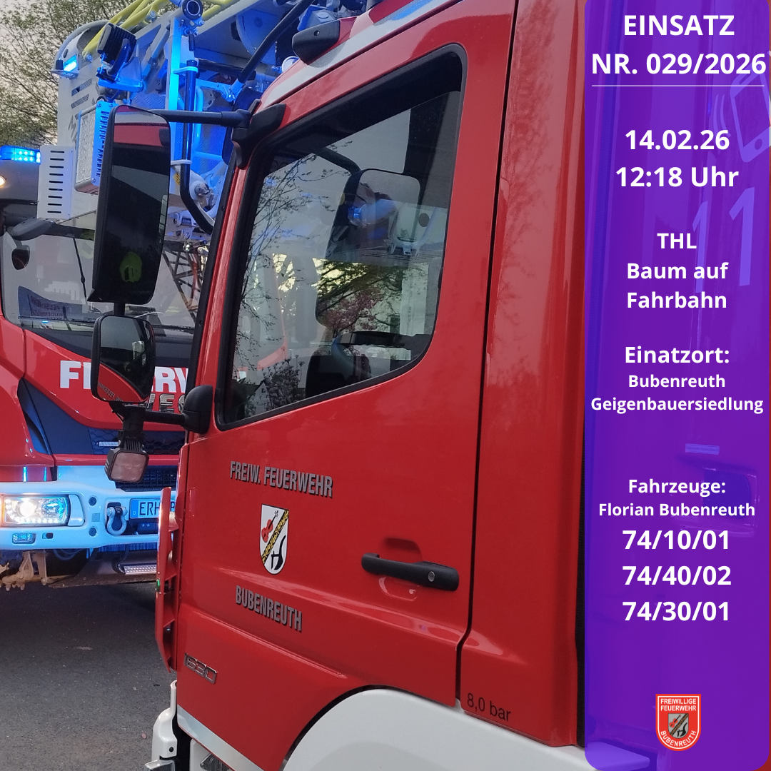 Bubenreuth, 14. Februar 2026 – Am Freitagmittag wurde die Feuerwehr Bubenreuth zu einer Technischen Hilfeleistung in die Geigenbauersiedlung alarmiert. Die Integrierte Leitstelle Nürnberg setzte die Einsatzkräfte um 12:18 Uhr in Marsch, nachdem ein aufmerksamer Bürger lose Äste in einer Baumkrone gemeldet hatte.