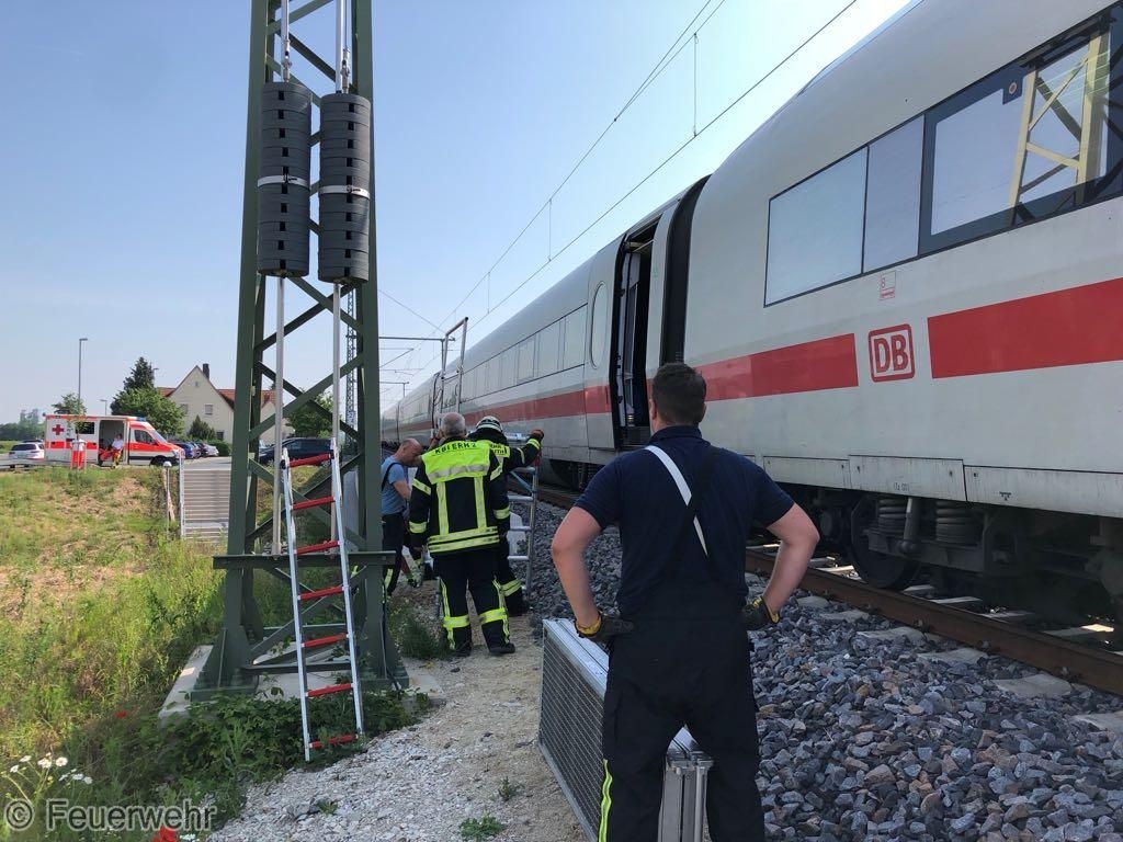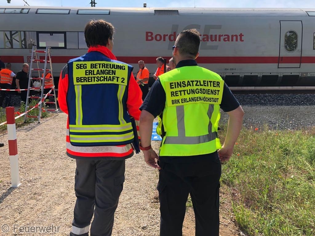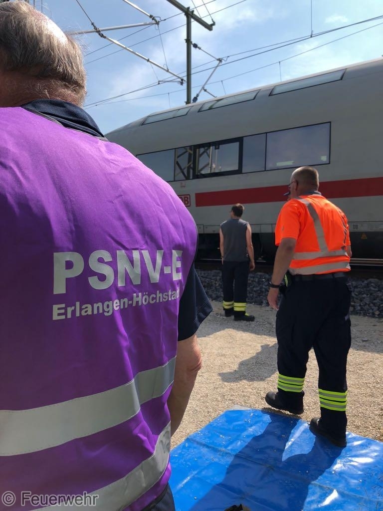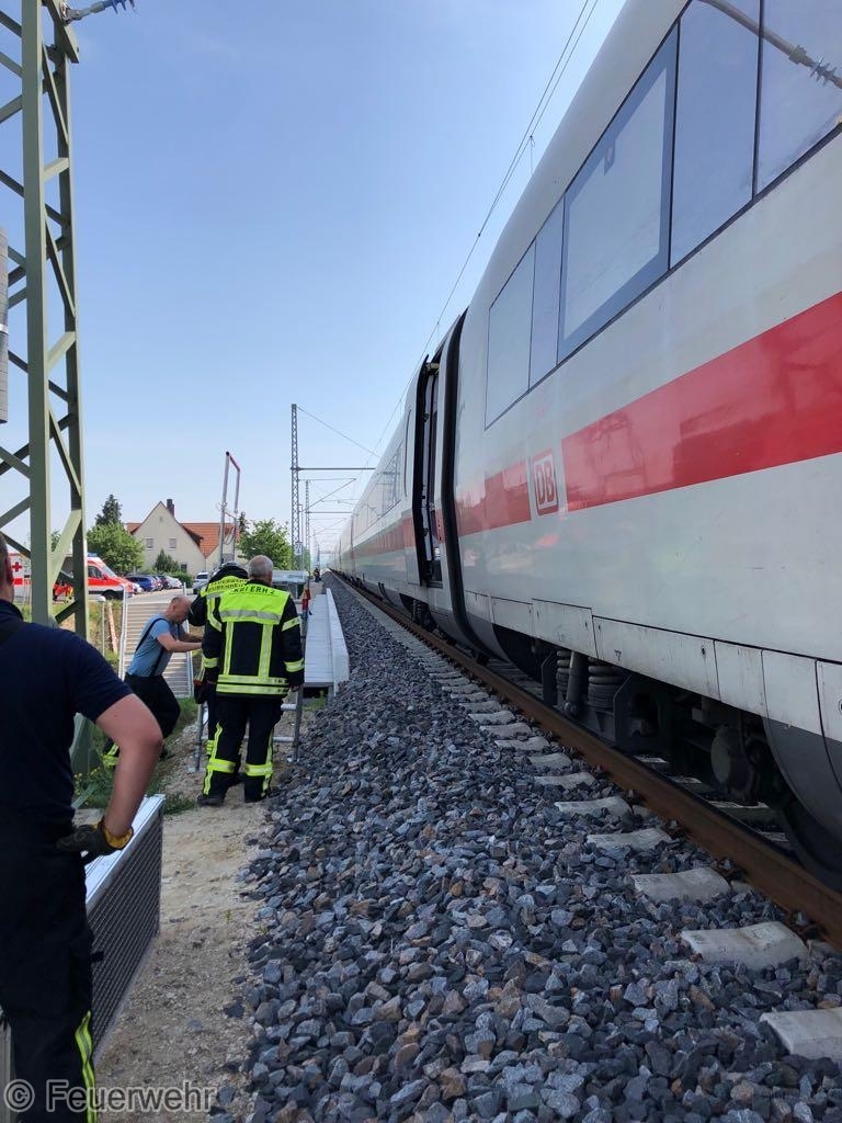 Am 29.Mai um 08:42 Uhr alarmierte die Integrierte Leistelle Nürnberg die Feuerwehren Bubenreuth und Baiersdorf, den Inspektionsdienst des Landkreises, Rettungsdienst, Notarzt und Polizei zu einem Personenunfall auf der Neubaustrecke nördlich von Bubenreuth, nachdem der Triebfahrzeugführer eines in Richtung München fahrenden ICE´s den Zug mittels Schnellbremsung zum Stehen gebracht und einen entsprechenden Notruf abgesetzt hatte.