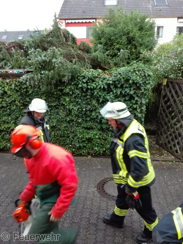 Die ILS Nürnberg alarmierte die Feuerwehr Bubenreuth mit dem Alarmstichwort "Baum auf Glasdach". Die durch den Sturm abgebrochene Fichte landete auf einem Glasdach des Nachbargrundstückes. Mit Hilfe einer Motorsäge wurde der Baum beseitigt.