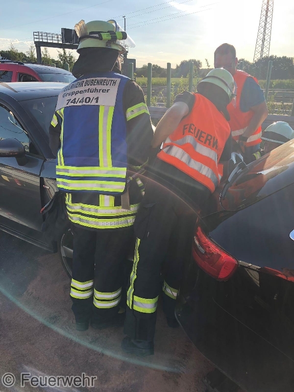 Die ILS Nürnberg alarmierte die Feuerwehr Bubenreuth auf die Staatsstraße 2244 zwischen Erlangen und Bubenreuth. Hier hatte sich ein Auffahrunfall ereignet bei dem Betriebsstoffe abgebunden werden sollten. Die Feuerwehr Bubenreuth sicherte die Unfallstelle ab und regelte den Verkehr einspurig an der Unfallstelle vorbei. Kurz nach der Absicherung ereignete sich ca. 300 Meter entfernt ein erneuter Unfall in dem weitere 4 Fahrzeuge verwickelt waren. Eine Person musste leichtverletzt vom Rettungsdienst in ein Krankenhaus gebracht werden. Der First Responder übernahm hier die Erstversorgung. Des weiteren mussten auch hier Betriebsstoffe aufgenommen werden. Vier Fahrzeuge waren fahruntauglich und mussten mit dem Abschleppdienst von der Einsatzstelle abtransportiert werden.