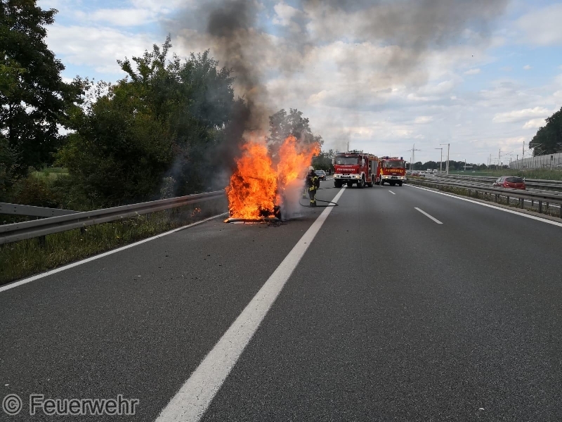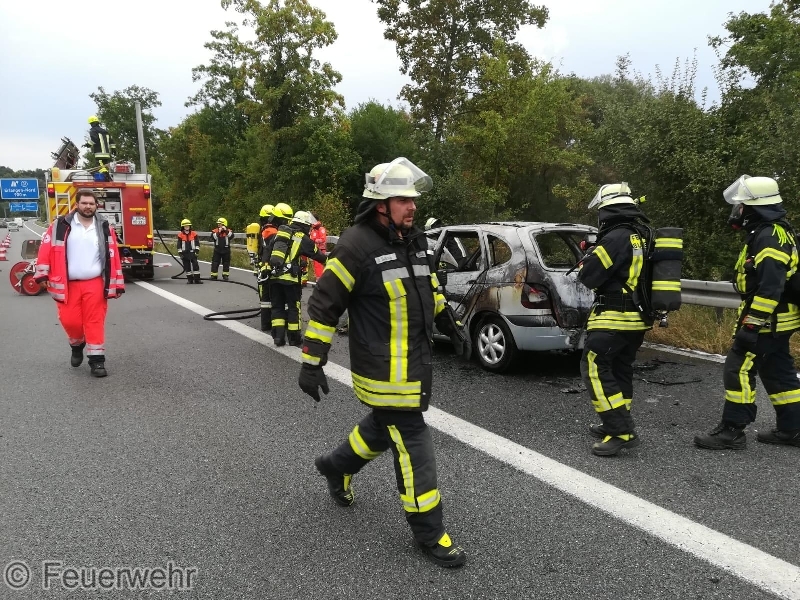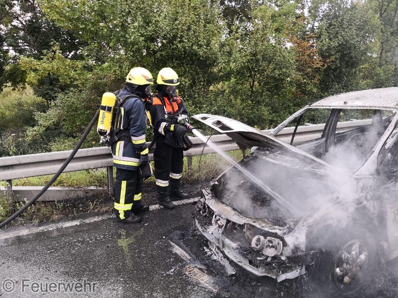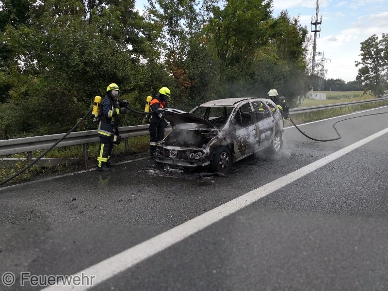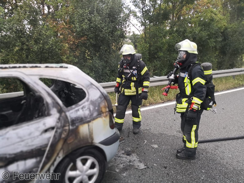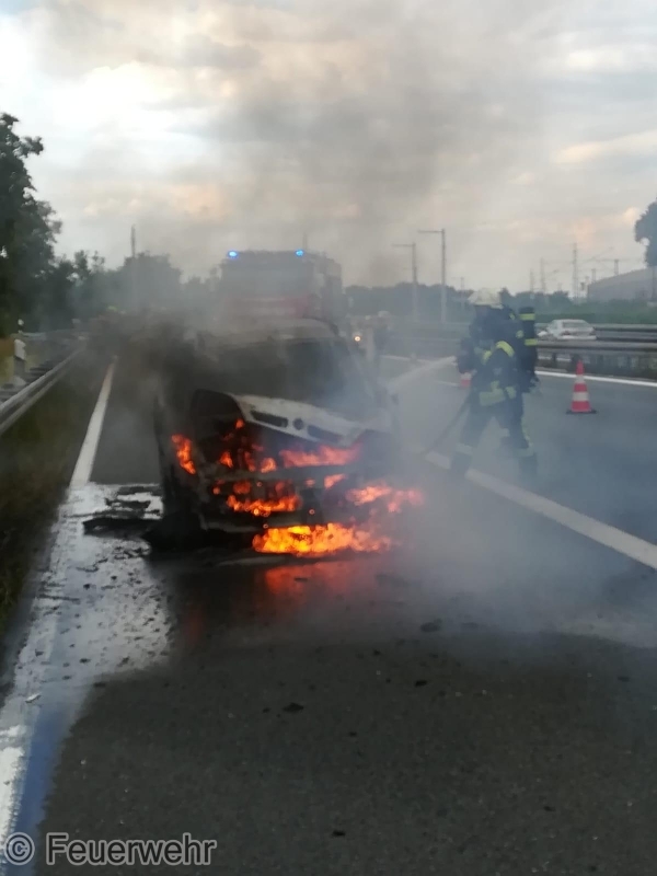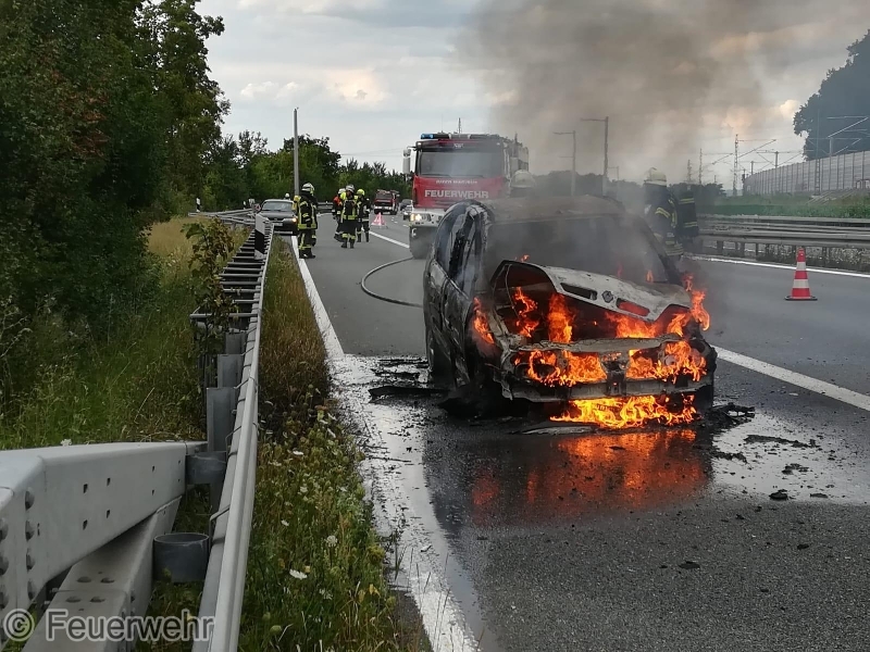 Die ILS Nürnberg alarmierte die Feuerwehren Bubenreuth, Baiersdorf und Möhrendorf sowie den Rettungsdienst auf die BAB 73 Auffahrt Möhrendorf in Richtung Erlangen zu einem PKW Brand. Schon auf der Anfahrt war eine starke Rauchentwicklung ersichtlich. Bei Ankunft stand der PKW bereits in Vollbrand. Der Angriffstrupp ging unter schwerem Atemschutz mit dem Schnellangriff zur Brandbekämpfung vor. Der Wassertrupp übernahm die Verkehrsabsicherung. Die nachrückenden Kräfte aus Möhrendorf übernahmen mit dem 2. Angriffstrupp ebenfalls die Brandbekämpfung. Die Feuerwehr Baiersdorf sicherte mit Hilfe des Verkehrssicherungsanhängers die Einsatzstelle ab. Der PKW Fahrer sowie sein Beifahrer konnten rechtzeitig das Fahrzeug verlassen. Der Rettungsdienst übernahm die Absicherung für die Einsatzkräfte.