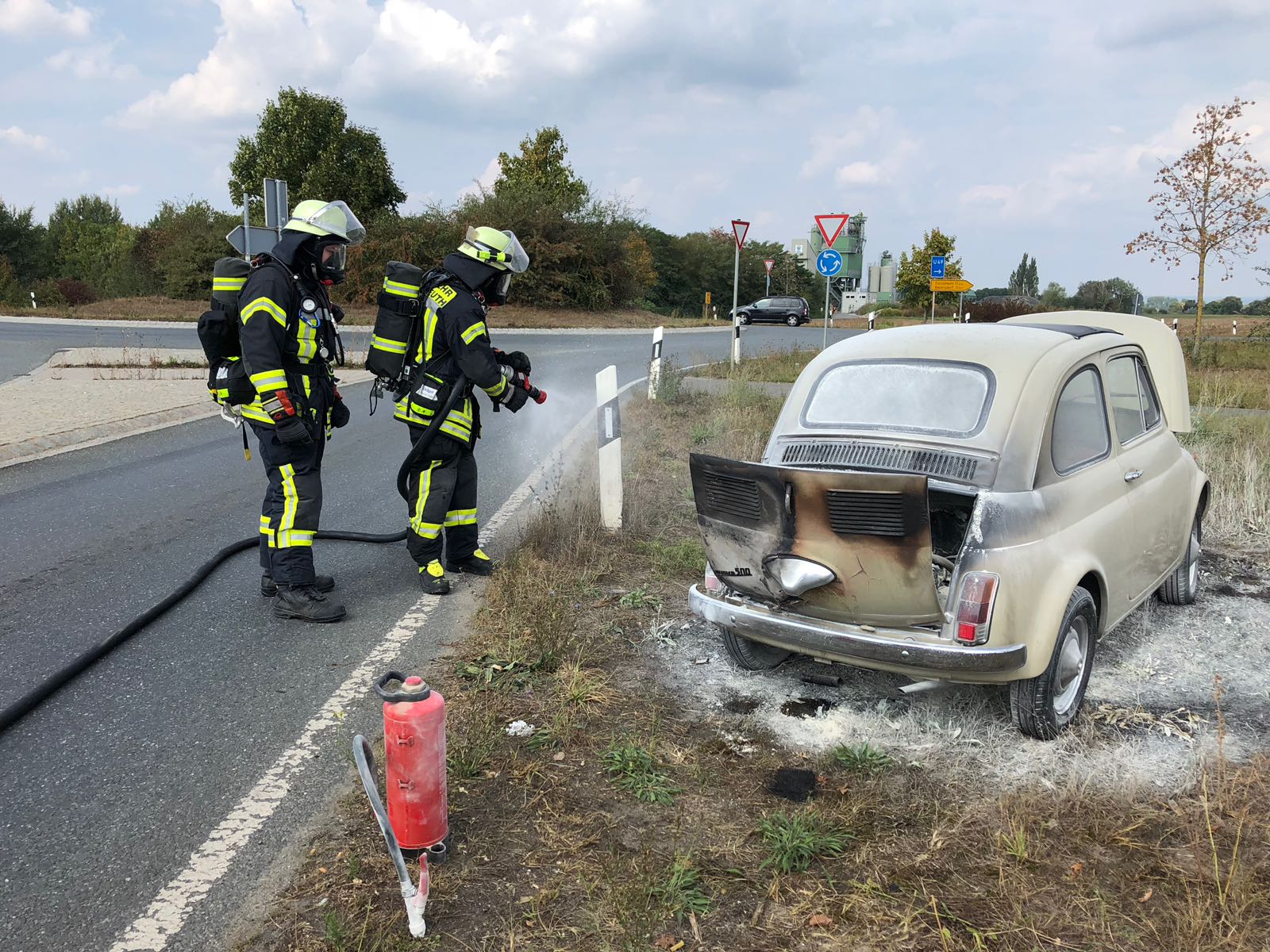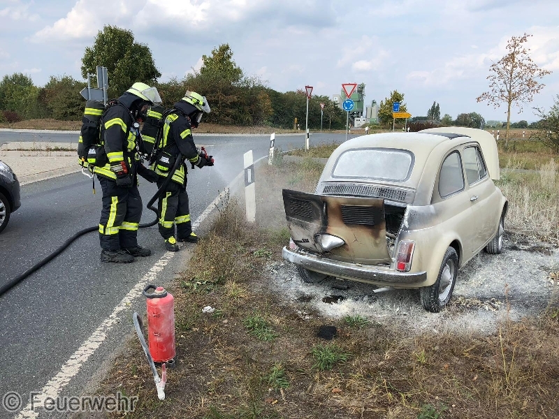 Die Feuerwehr Bubenreuth wurde von der Leitstelle Nürnberg zu einem PKW Brand auf der ST2244 zwischen Bubenreuth und Möhrendorf alarmiert. Da sich der Kommandant der Wehr gerade im Gerätehaus befand, konnte er umgehend mit dem KdoW ausrücken und sich ein Bild von der Lage machen. Der Erstangriff wurde bereits durch den Besitzer des brennenden Fahrzeugs mit Hilfe eines Feuerlöschers vorgenommen. Diesen führte ein zufällig vorbeifahrender LKW mit. Die Nachlöscharbeiten wurden durch die Kameraden der FF Bubenreuth mit Hilfe der Schnellangriffseinrichtung des Hilfeleistungslöschfahrzeuges durchgeführt.