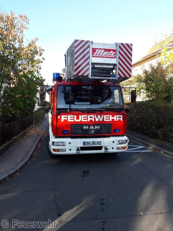 Die ILS Nürnberg alarmierte die Feuerwehr Bubenreuth gemeinsam mit den Wehren aus Baiersdorf, Möhrendorf und Kleinseebach sowie den Inspektionsdienst und den Rettungsdienst zu einem Zimmerbrand nach Bubenreuth. Bei einer Wohnung drang Rauch aus einem der Fenster. Beim Eintreffen hatte eine beherzt vorgehende Nachbarin mit einem Feuerlöscher den Entstehungsbrand in einem WC bereits unter Kontrolle gebracht, nach kurzen Nachlöscharbeiten wurde das Gebäude überdruckbelüftet. Die überörtlich alarmierten Wehren konnten umgehend wieder die Rückkehr zum Standort antreten. Ursache war offensichtlich ein Defekt an einem Frostwächter. Verletzt wurde niemand, der Sachschaden hält sich in Grenzen.