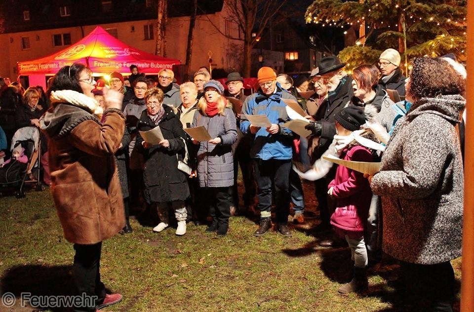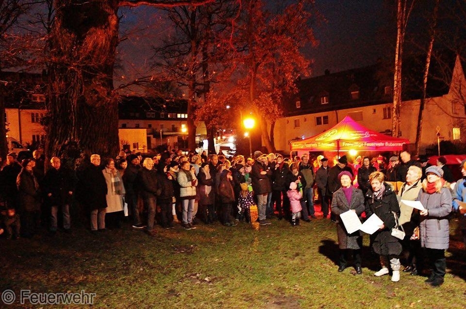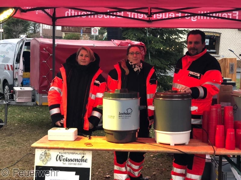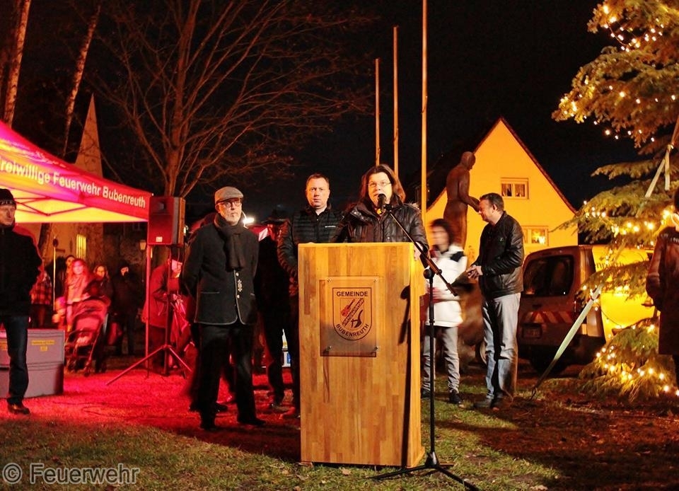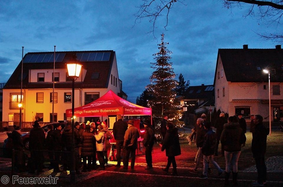 Eine schöne Tradition am Heiligen Abend ist in Bubeneruth die traditionelle Weihnachtsfeier auf dem Bubenreuther Eichenplatz. Die Geigenbauerkapelle spielt, der Egerländer Heimatchor singt und unser Bürgermeister und die Kirchenvertreter wünschen der Gemeinde " Frohe Weihnachten " . Gegen die Kälte hilft ein guter Glühwein, den die First Responder Gruppe ausschenkt. Der Rest der Mannschaft sperrt während der Veranstaltung die Straßen um den Eichenplatz ab. Dann gehen auch die Kameraden der Feuerwehr Bubenreuth zu Ihren Lieben nach Hause und feiern den Weihnachtsabend.