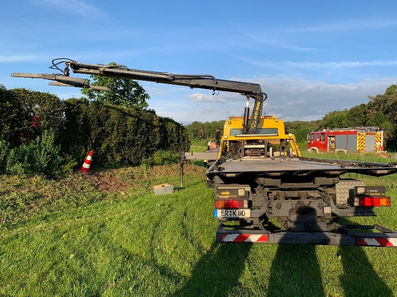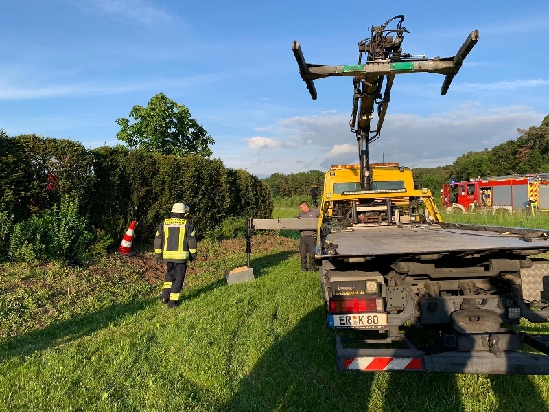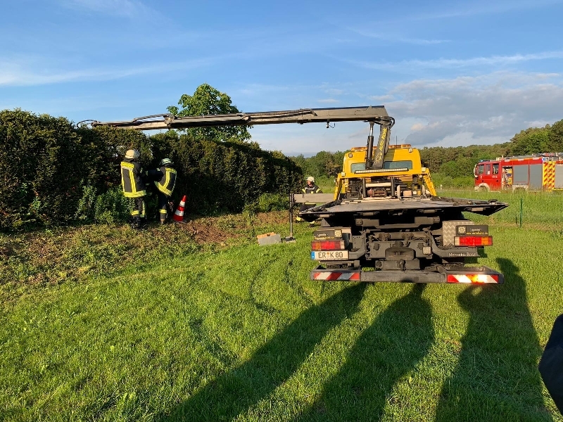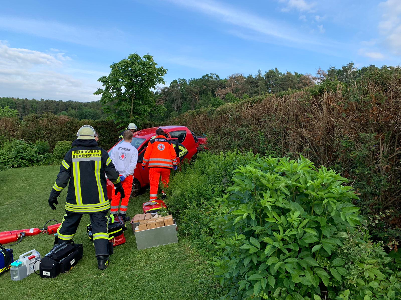 Um 19:07 Uhr alarmierte die ILS Nürnberg die Feuerwehr Bubenreuth gemeinsam mit dem Rettungsdienst und der Polizei in die Hauptstraße nach Bubenreuth. Ein Fahrzeug das aus Bubenreuth in Richtung Bräuningshof unterwegs war kam von der Fahrbahn ab durchbrach hierbei einen Zaun und schoß über einen Hügel durch eine Heck. Das Fahrzeug kam in einem Garten schließlich zum stehen. Beim Eintreffen der Feuerwehr befand sich die Fahrerin noch im Fahrzeug und stand sichtlich unter Schock. Das Fahrzeug wurde gesichert und die Fahrerin an den Rettungsdienst übergeben. Für die Einsatzdauer war es erforderlich die Kreisstraße in Richtung Bräuningshof einspurig zu sperren. Das verunfallte Fahrzeug wurde durch ein Abschleppfahrzeug geborgen. Die Einsatzstelle wurde an die Polizei übergeben. Gegen 20:15 Uhr konnten die Einsatzkräfte wieder in das Gerätehaus einrücken.
