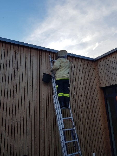 Die Feuerwehr Bubenreuth wurde über einen massiven Wespenbefall am Kinderhort in der Binsenstraße informiert. Daraufhin machten sich am heutigen Abend vier Kameraden mit unserem LF16 auf dem Weg und erkundeten die Lage. Insgesamt wurde 15 Wespennester fachgerecht beseitigt und der Betrieb kann ohne Gefahr fortgeführt werden.