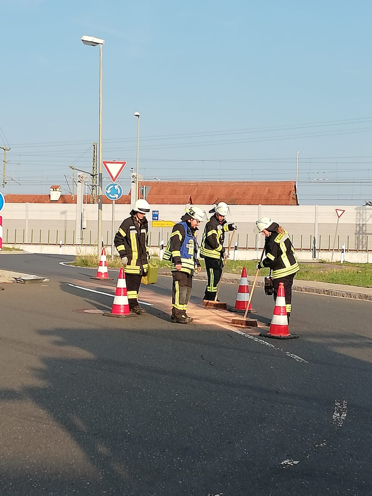 Die Leitstelle Nürnberg alarmierte die Feuerwehr Bubenreuth auf Anforderung durch die Feuerwehr Möhrendorf zu einer Ölspur im Industriegebiet Bruckwiesen. Vermutet wurde das ein Linienbus auf seiner Tour in Richtung Erlangen an verschiedenen Stelle Diesel verloren hatte. Der Einsatzleiter der Feuerwehr Bubenreuth kontrollierte die Fahrtstrecke im Einsatzbereich der Feuerwehr Bubenreuth konnte aber ausser im Kreisverkehr Bruckwiesen keine Feststellungen machen. Die Betriebsstoffe wurden mit Ölbindemittel abgebunden.