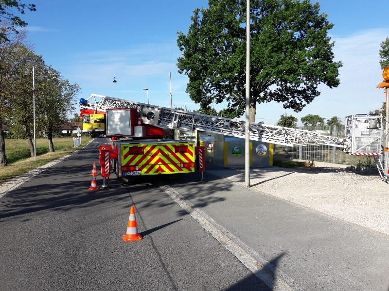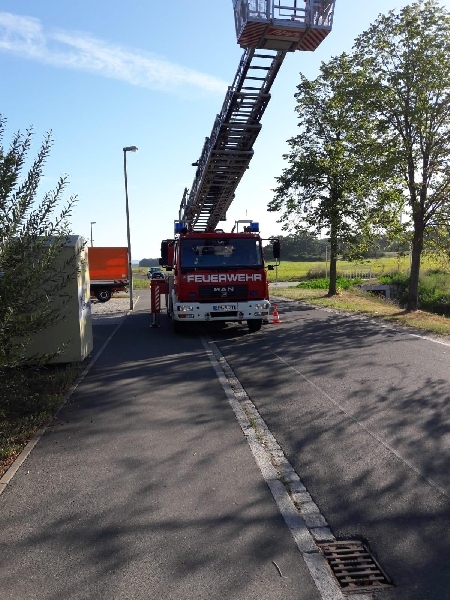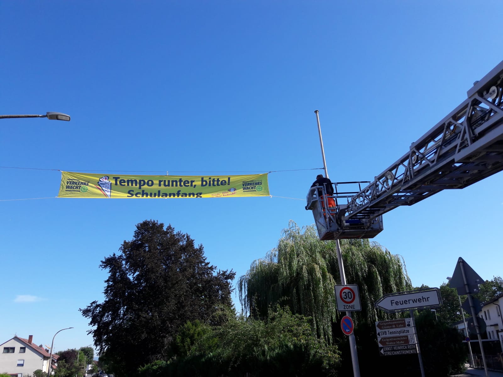 Heute unterstützten 2 Kameraden mit der Drehleiter den örtlichen Bauhof beim Anbringen der Verkehrswachtbanner zum Schulbeginn.