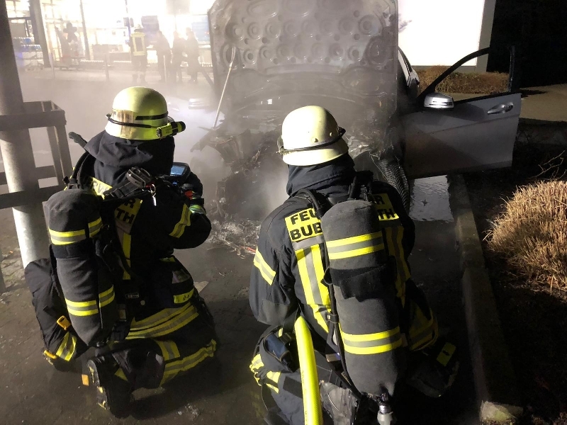 Die Feuerwehr Bubenreuth wurde am 23.12.10 um 17:24 Uhr gemeinsam mit der Polizei und dem Rettungsdienst zu einem PKW Brand im Gewerbegebiet Bruckwiesen alarmiert. Bei Eintreffen der Einsatzkräfte stand der PKW bereits im Vollbrand. Der Angriffstrupp konnte unter schwerem Atemschutz mit Hilfe der Schnellangriffseinrichtung die Flammen schnell unter Kontrolle bringen. Verletzt wurde bei diesem Einsatz glücklicherweise niemand.