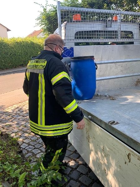 Bürger informierten die Feuerwehr darüber das der Akku eines E-Bikes begann sich zu zersetzen beginnt. Die betroffenen Bürger legten den Akku in ein Wasserbad. Von der Feuerwehr wurde der Akku in ein Transportfass umgelagert. Das Fass und die Flüssigkeit des ursprünglichen Behälters wurde verladen und wird im Bauhof in Bubenreuth zwischen gelagert, bis es dann am Montag der Entsorgung zugeführt wird. Trotz der hohen Temperaturen wurde der Einsatz in leichter Chemiekalienschutzkleidung durchgeführt! Im Hintergrund wurde Kontakt mit dem Kreisbrandmeister Gefahrgut gehalten. Telefonisch wurden wir von ihm beraten. Nach 30 Minuten war der Einsatz abgearbeitet !