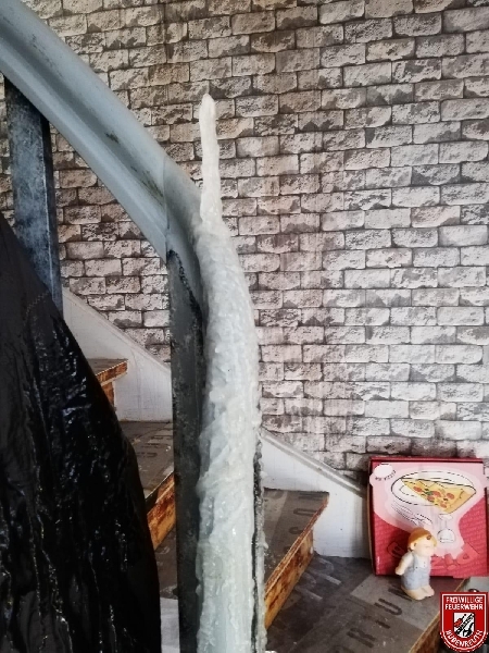 Die Leitstelle Nürnberg alarmierte auf Anforderung der Polizei die Feuerwehr Bubenreuth am 14.02.21 um 12:00 Uhr in die Schönbacher Straße zu einer Wohnungsöffnung. Der Nachbar meldete, dass seine Wände des Reihenhauses bereits feucht geworden wären und er einen Rohrbruch in dem leerstehenden Nachbarhaus vermutet. Die Haustüre wurde mit Hilfe des Sperrwerkzeuges geöffnet und wie bereits vermutet lag ein enormer Wasserschaden vor. Das Wasser welches bereits gefroren war machte das Haus zu einer reinen Eislandschaft. Der Hausanschluss wurde durch die Feuerwehr abgedreht und die Haustüre wurde wieder verschlossen. Die Einsatzstelle wurde an die Polizei übergeben und die Kräfte konnten einrücken.
