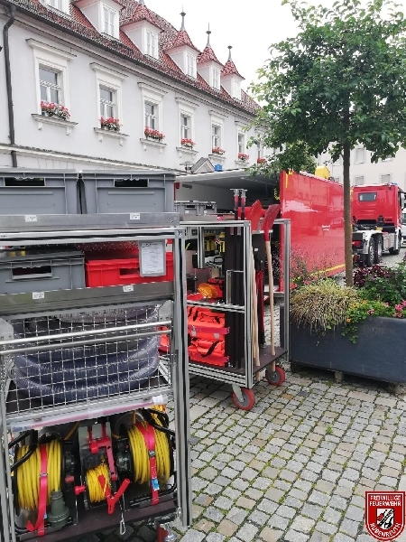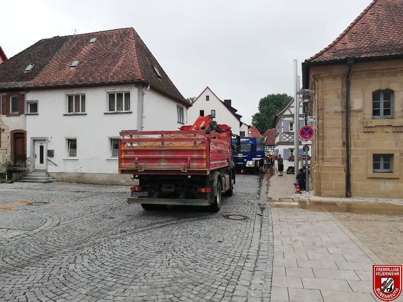 Seit 5:30 Uhr wurde die Sandsacklogistik des Landkreises Erlangen-Höchstadt wieder hochgefahren. Die Hochwasserlage im Bereich Höchstadt an der Aisch verschlimmerte sich und es wurden ca. 35 LKW's des THW beladen mit Sandsäcken nach Sterpersdorf und Höchstadt/Aisch entsendet.