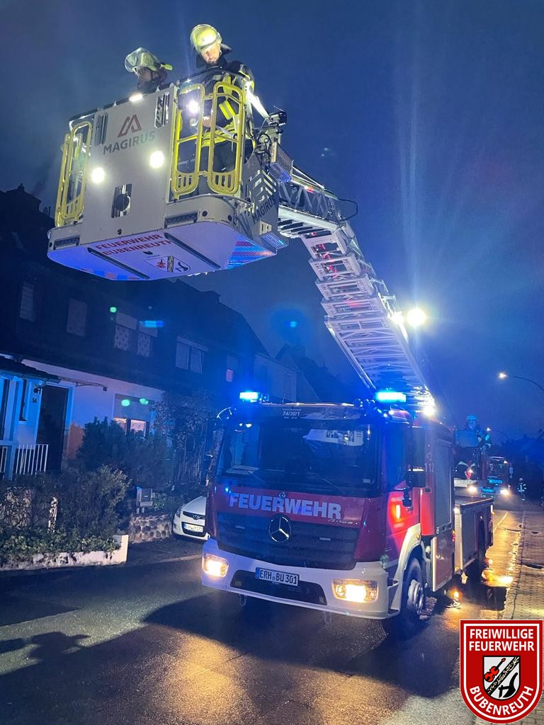 Die Leitstelle Nürnberg alarmierte am 14.10.2021 um 18:40 Uhr die Kameraden der Feuerwehr Bubenreuth gemeinsam mit dem Rettungsdienst in die Sudetenstraße zu einem Kaminbrand. Bei Eintreffen des Einsatzleiters drang dicker schwarzer Rauch aus dem Schornstein des Gebäudes. Umgehend wurde die Drehleiter in Stellung gebracht und der Schornstein kontrolliert. Der Angriffstrupp des HLF1 kontrollierte unter Atemschutz mit einem Mehrgasmessgerät in der Zwischenzeit das Gebäude. Hier konnten jedoch keine Feststellungen gemacht werden. Nach Rücksprache mit dem zuständigen Bezirksschornsteinfeger wurde der Holzofen außer Betrieb genommen. Nach ca. 45 Minuten Einsatzdauer konnte die Einsatzstelle an den Besitzer übergeben werden und die Einsatzbereitschaft wieder hergestellt werden.
