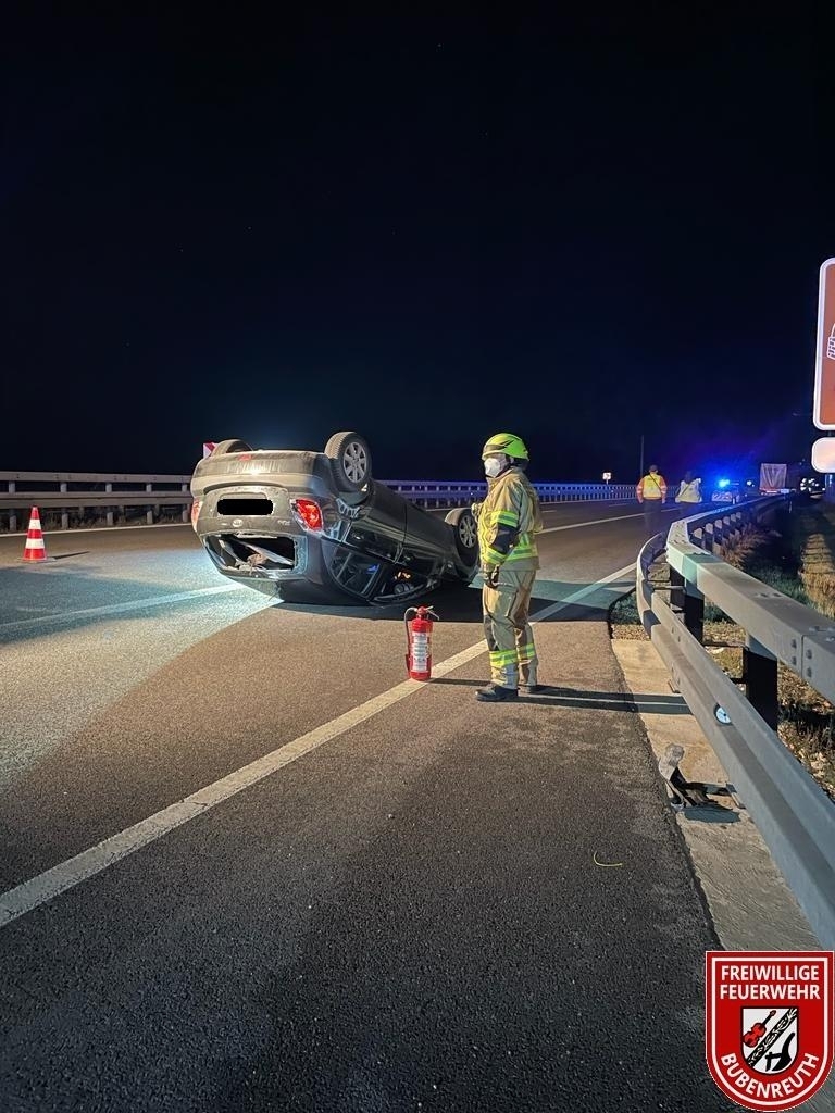 Die Leitstelle Nürnberg alarmierte die Feuerwehren Baiersdorf, Bubenreuth, Möhrendorf, Kleinseebach und Wellerstadt sowie den Rettungsdienst und die Polizei auf die BAB73 zu einem Verkehrsunfall mit eingeklemmter Person. Glücklicherweise stellte sich an der Einsatzstelle heraus, dass die verunfallte Person sich selbst aus dem PKW befreien konnte und nicht eingeklemmt war. Ein Eingreifen der Bubenreuther Kräfte war somit nicht erforderlich.