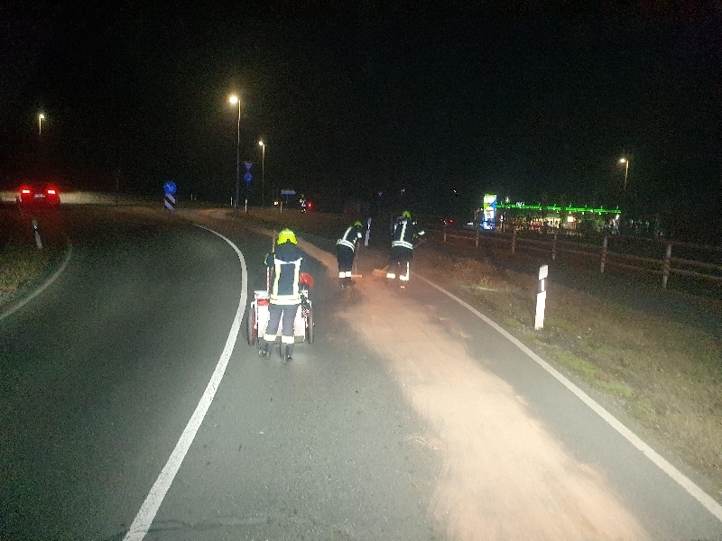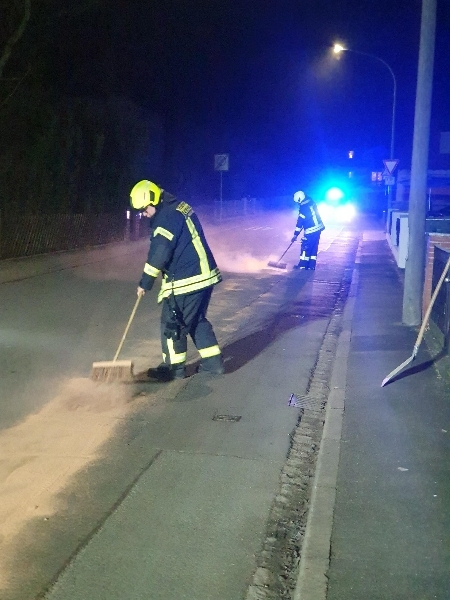 Die Leitstelle Nürnberg alarmierte am 20.12.2021 um 20:18 Uhr die Kameraden der Feuerwehr Bubenreuth zu einer größeren Ölspur im gesamten Gemeindegebiet. Nach Erkundung der verschiedenen Einsatzstellen durch den Einsatzleiter wurde die Mannschaft entsprechend auf die ausrückenden Fahrzeuge eingeteilt. Der Florian Bubenreuth 74/14/1 rückte mit dem Mehrzweckanhänger und 5 Mann Besatzung in den Bubenreuther Süden aus und begann dort mit dem Abbinden der Dieselspur. Die Besatzung des HLF2 protzte zunächst die EPH Schlauch ab und belud die EPH Geräteträger mit Ölbindemittel und protzte diese entsprechend am Fahrzeug auf. Dann ging es mit 5 Mann Besatzung zunächst zum Kreisverkehr Bruckwiesen um dort den verlorenen Kraftstoff abzubinden. Zug um Zug wurde eine Einsatzstelle nach der anderen im Ortsgebiet abgearbeitet. Gegen 22:00 Uhr konnten die Einsatzkräfte die Einsatzbereitschaft im Gerätehaus wieder herstellen.
