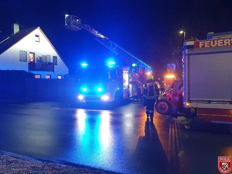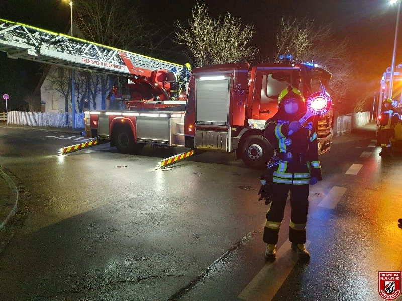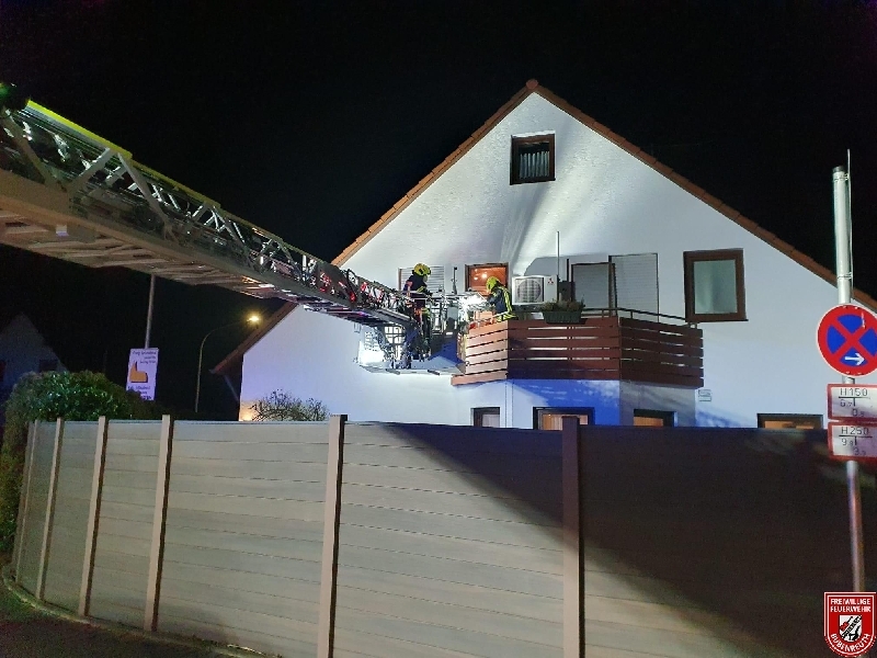 Um 20:24 Uhr erfolgte die stille Alarmierung der Kameraden, welche sich umgehend mit der Drehleiter und dem Hilfeleistungslöschfahrzeug auf den Weg zur Einsatzstelle machten. Durch den First Responder vor Ort wurden die Kameraden eingewiesen und der Aufstellplatz der DLK festgelegt, wodurch wertvolle Zeit eingespart werden konnte. Zügig wurde der Tragentisch am Korb der DLK angebracht und die Schleifkorbtrage montiert. Durch das HLF2 wurde die gesamte Einsatzstelle ausgeleuchtet. Der Fahrzeugführer der DLK steuerte den Korb an den Balkon des ersten Obergeschosses, um dort den Patienten zu übernehmen. Unterdessen wurde bereits auf der Straße die Trage des RTW vorbereitet, um den Patienten schnellstmöglich von der Schleifkorbtrage auf die RTW Trage umlagern zu können.