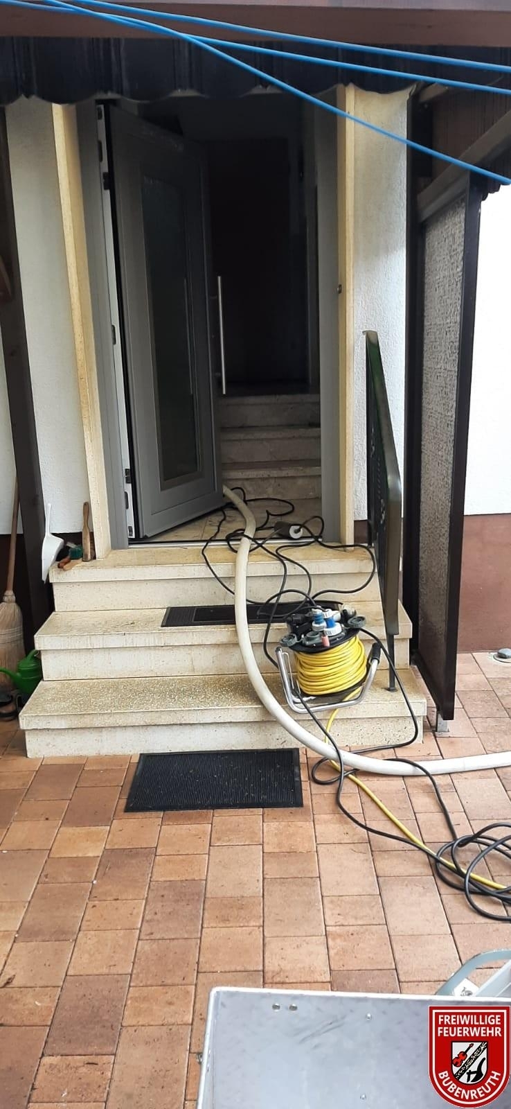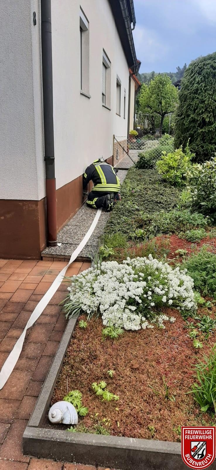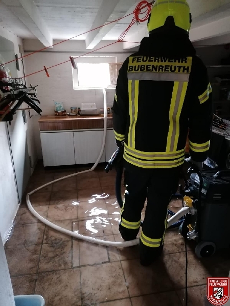 Die ILS Nürnberg alarmierte am 04.05.2022 um 14:47 Uhr die Kameraden der Feuerwehr Bubenreuth zu einer Technischen Hilfeleistung in die Geigenbauersiedlung. Nach einem massiven lokalen Wolkenbruch war kurzfristig die Kanalisation überlastet und Wasser wurde durch einen Kellergulli zurück in ein Wohnhaus gedrückt. Kurz nach der Alarmierung rückten die Kameraden mit dem HLF2 und dem MTW an die Einsatzstelle aus. Die Erkundung ergab ca. 20cm Wasser im Keller des Gebäudes. Mittels Tauchpumpe und Wassersauger wurde das Wasser aus dem Gebäude gepumpt. Nach ca. 1,5 Stunden konnte das Gebäude an den Eigentümer übergeben werden.
