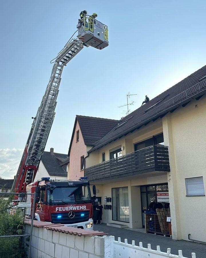 Mit der Drehleiter und einem Katzenkorb wurden Besitzer und Tier vom Dach gerettet.